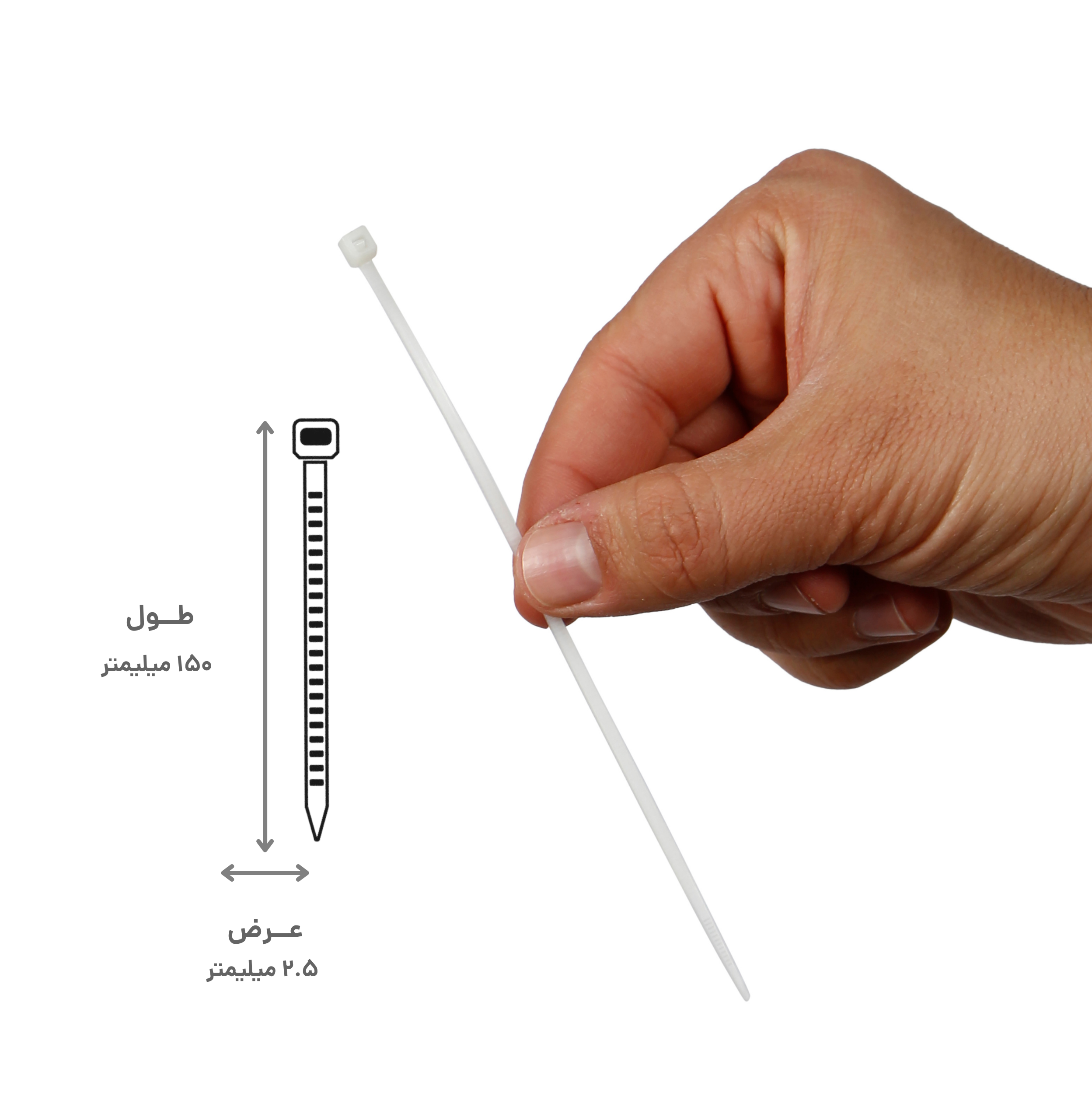 طول 150 میلی‌متر در کنار عرض 2.5 میلی‌متر، این بست را به گزینه‌ای مناسب برای بستن چند کابل همزمان یا کابل‌های ضخیم‌تر تبدیل کرده است.