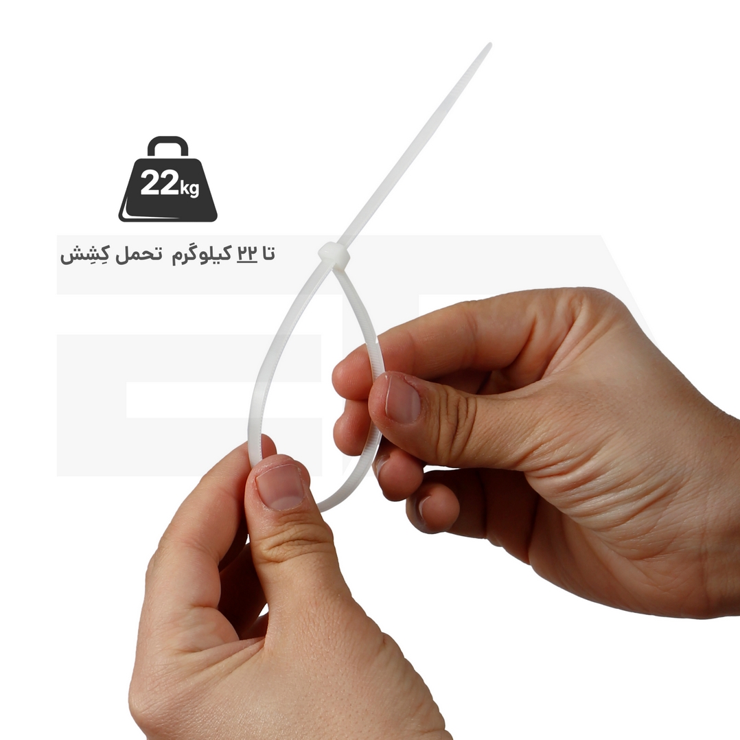 این بست کمربندی توان تحمل تا 22 کیلوگرم کشش را دارد و برای بستن کابلهای سنگین، تجهیزات تأسیساتی و کاربردهای صنعتی کاملاً مناسب است.